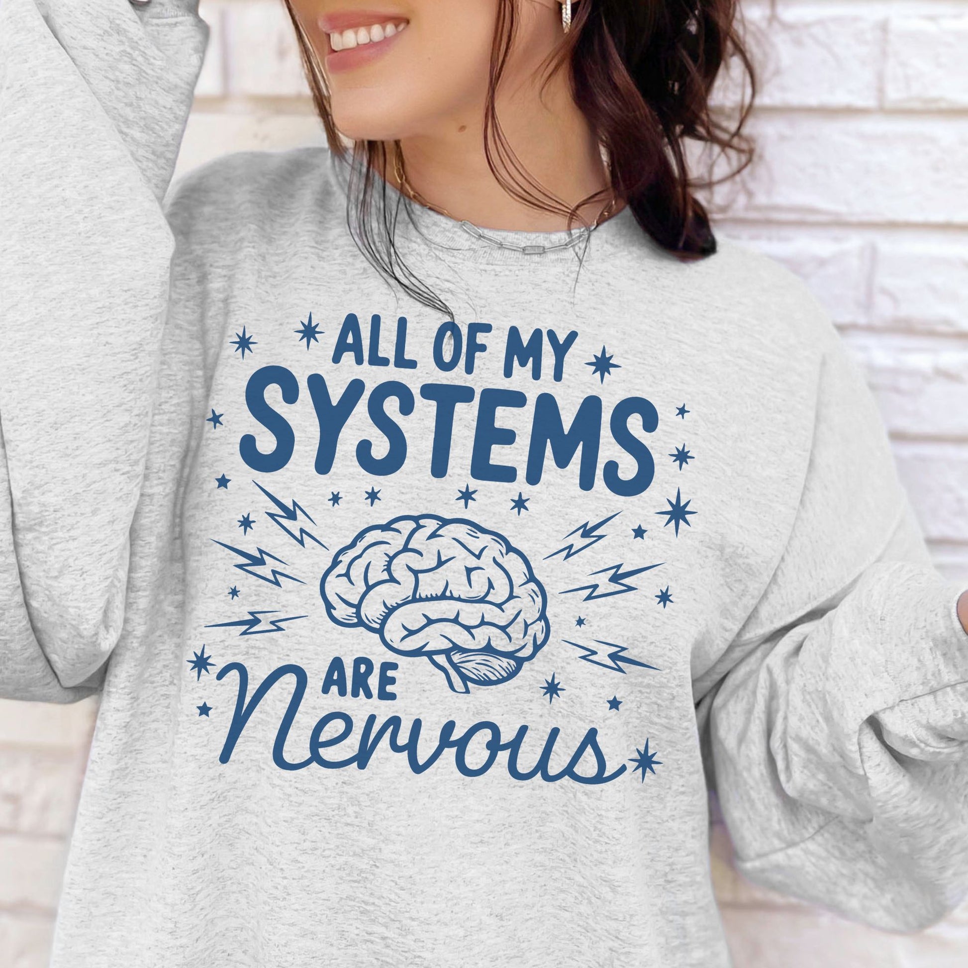 Anxiety Nervous System Humorous Sweatshirt All My Systems Are Nervous