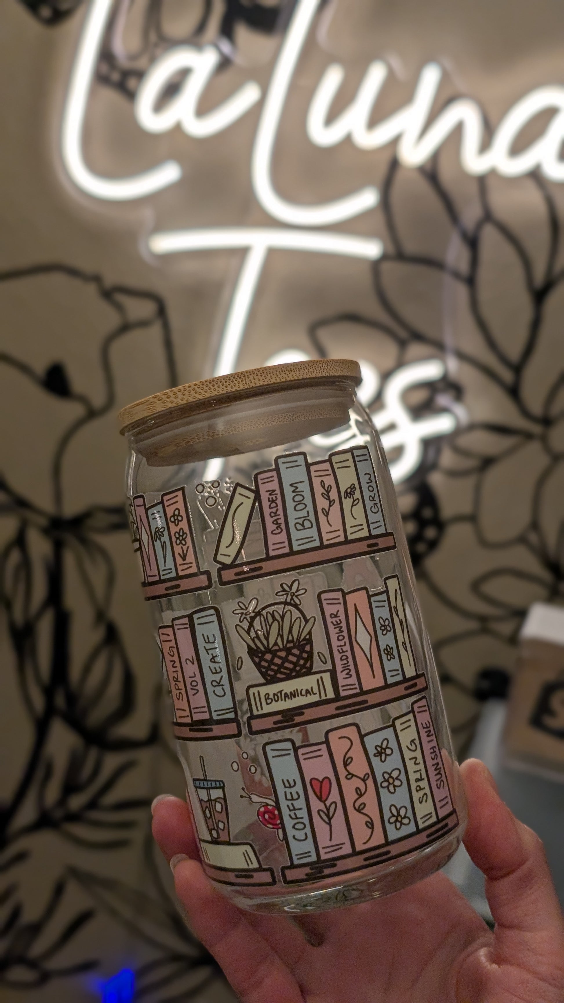 Booklover Bookish Reader Trendy Bookshelf Glass Cup