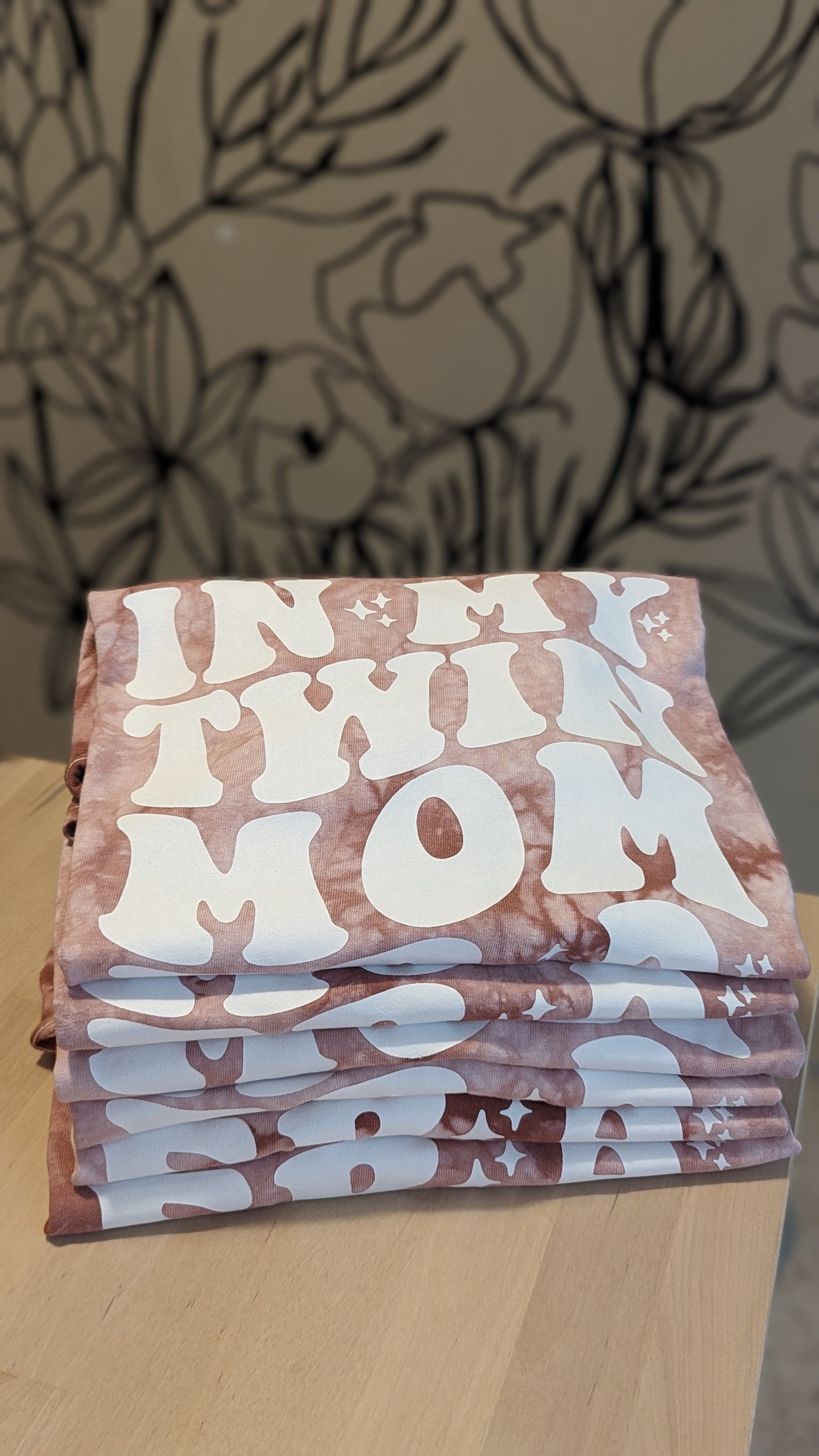 Groovy design every twin mama will love! This particular design is screen printed on a trendy colored tie dye tee. Please allow for color variations; tie dye is a unique process and no two will be exactly the same.