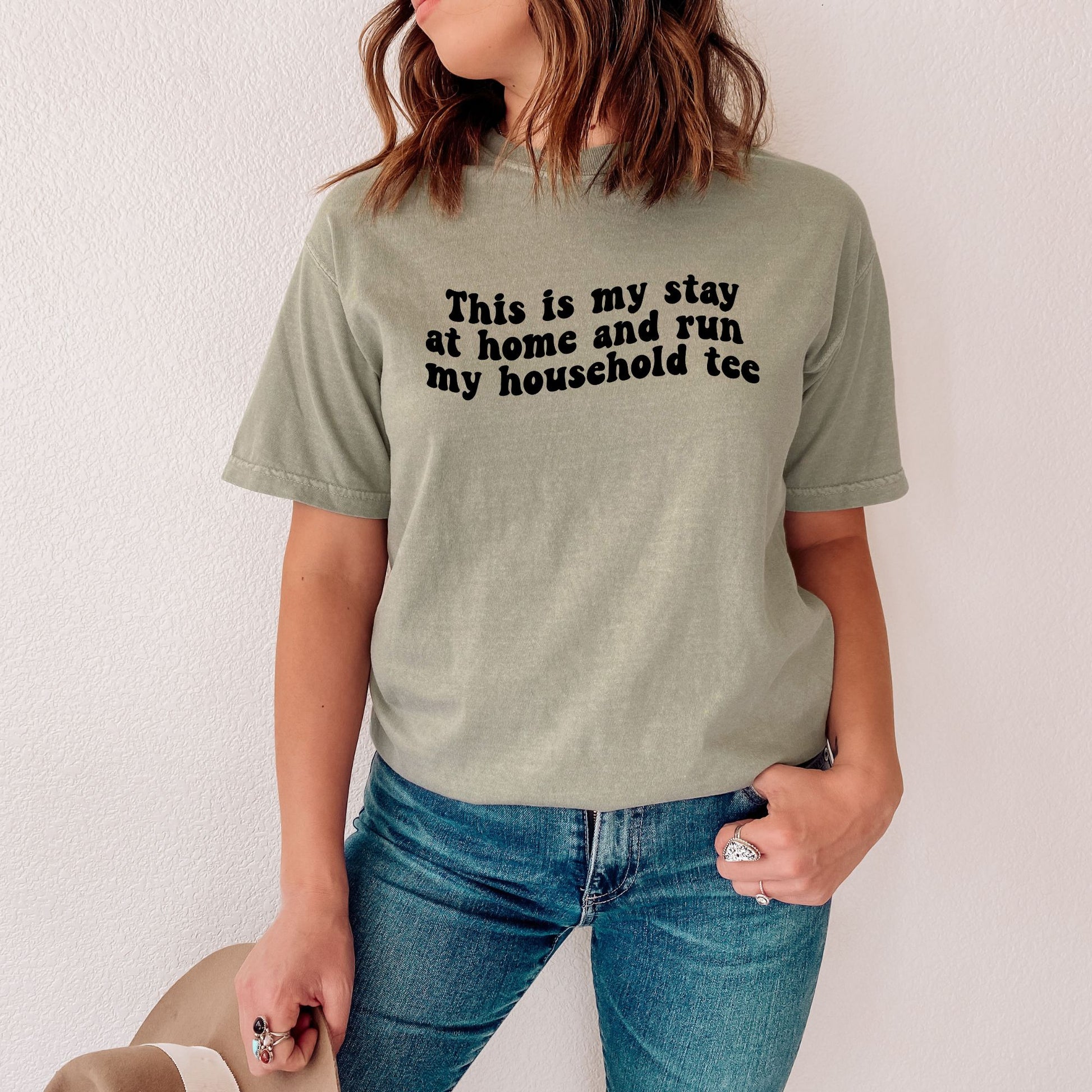Crafted for the hard-working stay-at-home mom, this t-shirt acknowledges the full-time job of running a household. With its comfortable fit this shirt is perfect for any stay-at-home mom looking to show pride in their important role.
