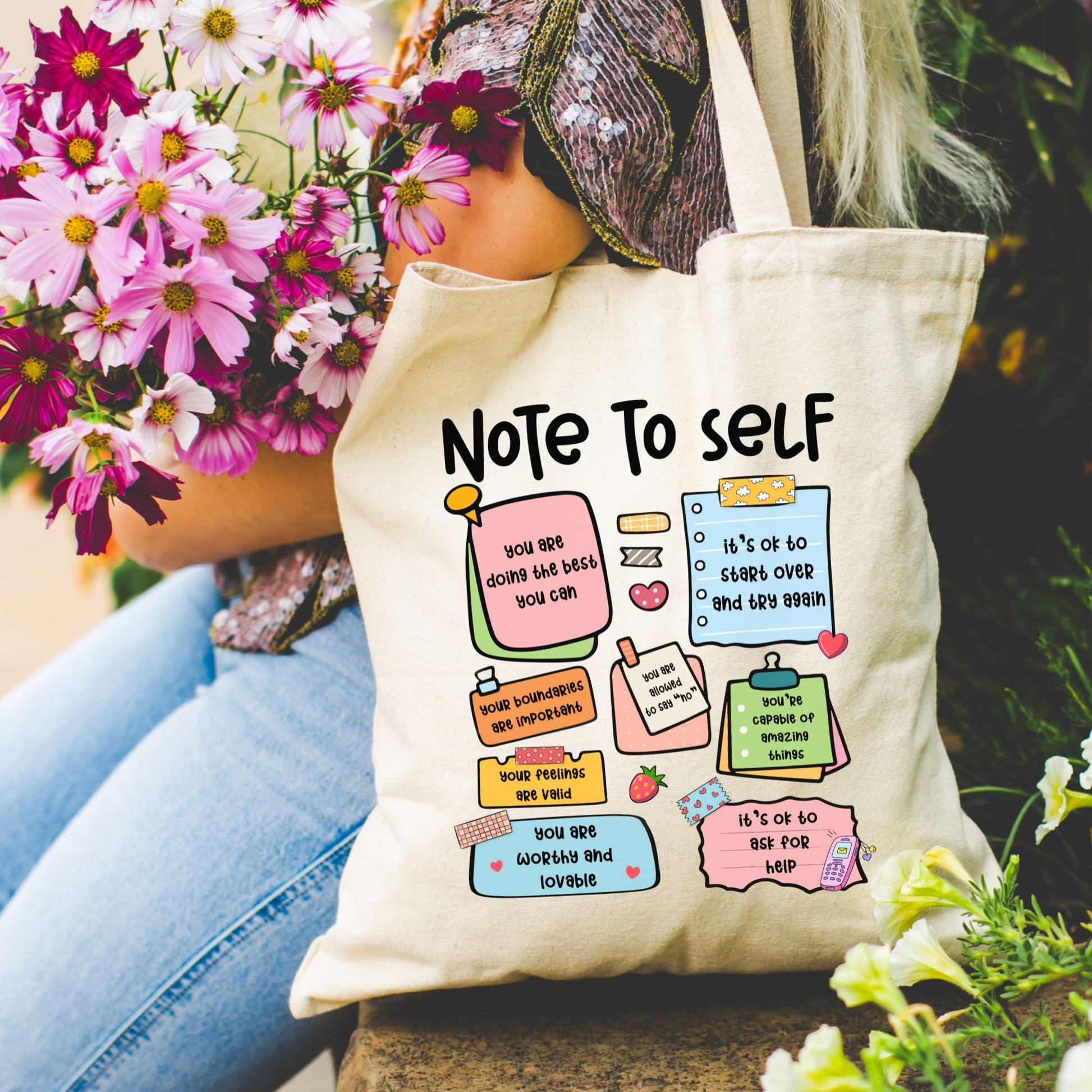 Sticky Notes Positive Affirmations Tote Bag